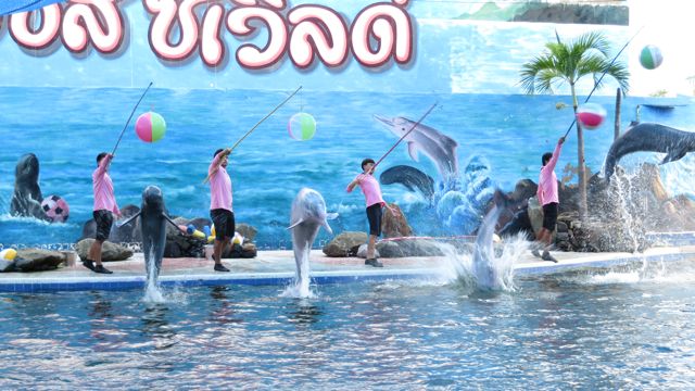 IMG_7410 ← Edellinen Seuraava → Varsinaisen shown aikana delfiinit eivät olleet kovin halukkaita temppuilemaan, mutta näyttivät kyllä mm. muutamia hienoja hyppyä