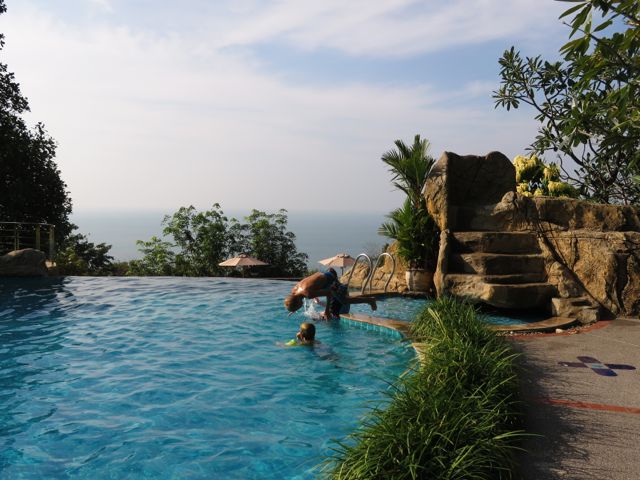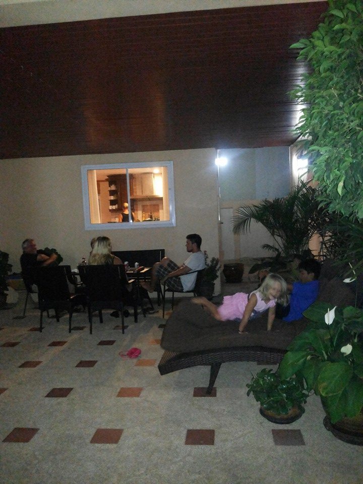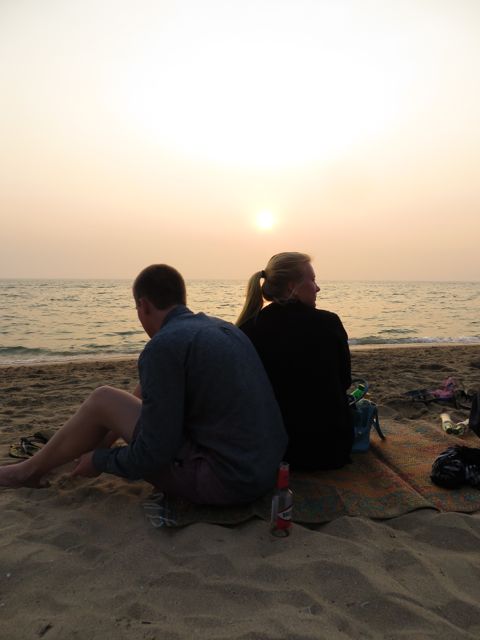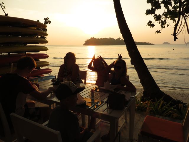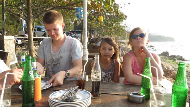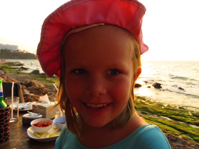 Retken päätteeksi menimme ihailemaan auringonlaskua ja syömään Bali Hain majakkaravintolaan. Tuuli yltyi yltymistään, ja ensimmäisen kerran oli kylmä! Tyttöjen piti mennä syötyään autoon lämmittelemään… No ehkä se ei olisi ollut ihan välttämätöntä. Mutta Thaimaassahan on nyt ollut ennätyskylmää, ja kylmyyttä on kestänyt ennätyksellisen kauan. Uutisten mukaan yli 60 ihmistä on kuollut kylmyyteen, pohjoisessa ja vuoristossa kun lämpötila laskee helposti lähelle nollaa, eikä ihmisillä ole mitään suojaa kylmää vastaan.