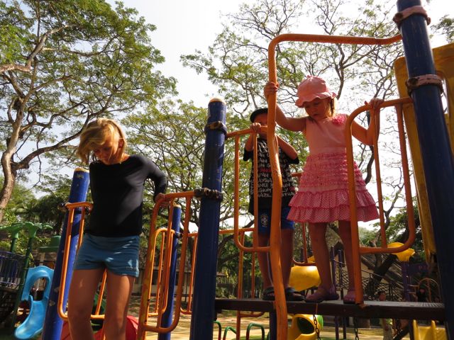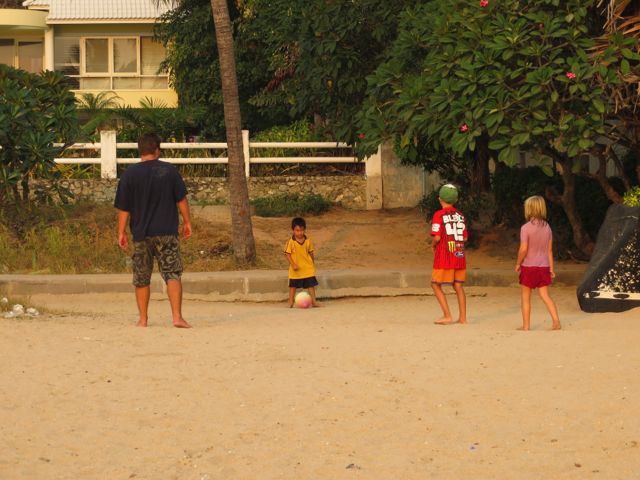 Lauantai-aamuna lähdimme tutustumaan n. 10 km keskustasta sijaitsevaan Planet Football -nimiseen paikkaan, koska siellä on lauantaiaamuisin klo 9-11 ilmainen kokeilumahdollisuus jalkapallokerhoissa eri ikäisille lapsille (5-7, 7-11 ja 12-15 -vuotiaille omat ryhmät). Oppu ja Piekku eivät kumpikaan uskaltaneet lopulta mennä mukaan harjoituksiin… Siellä on myös hyvät pelitilat, ja kenttiä on mahdollista vuokrata omaan käyttöön varsin kohtuulliseen hintaan (250-500 bahtia/tunti).