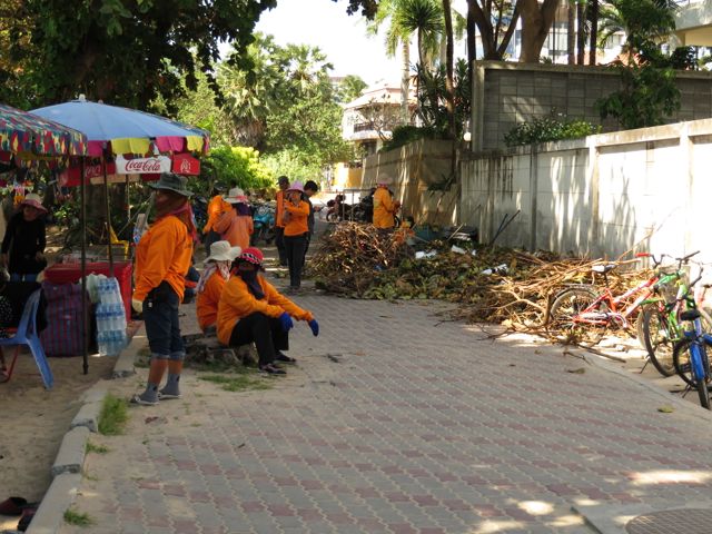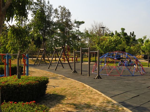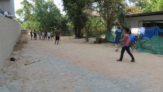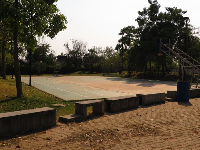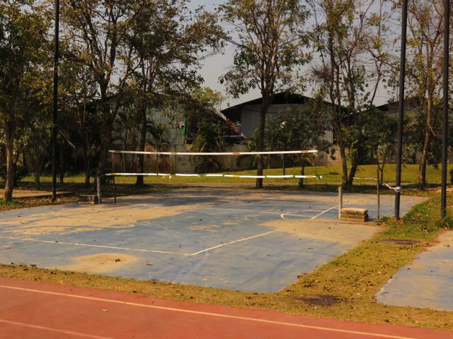 Viikonlopun ohjelmassa oli tutustuminen Pattayan urheilukenttiin -niihin vähiin olemassaoleviin. Kun miettii esim. Suomessa, siellä on joka puolella puistoja ja nurmikenttiä tai muita hyviä paikkoja vaikkapa jalkapallon pelaamiseen. Täällä niitä ei juuri ole. Nurmikenttiä ei tietenkään ole, koska ruoho ei kestäisi tätä kuumuutta ja kuivuutta. Kaikki joutomaa on yhtä rytökasaa, täynnä roskaa tai ainakin kaikenlaista kasvillisuutta.
