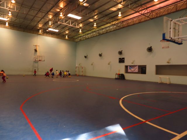 Lopulta löysimme ihka oikean jalkapallokentän Pattayan kunnankirjaston vierestä. Kirjasto sijaitsee tosiaankin keskellä ei-mitään, ei ihme ettei siellä kuulemma käy juuri ketään. Matkaa on Jomtienin rannalta n. 2-3 kilometriä pieniä, asutuksen keskellä kulkevia teitä pitkin, eikä matkalla näy yhtään opastetta. Kirjastossa on vapaassa käytössä oleva lehtilukusali, lasten elokuvahuoneita ja kivoja leikkipaikoja ulkona ja sisällä, ja tietysti suuri kirjasto, jossa myös englannin- ja myös mm. ruotsinkielisiä kirjoja. Ja vuosimaksu olisi 40 bahtia eli n. 1€! Jalkapallokentän lisäksi kirjaston vieressä sijaitsee v. 2006 rakennettu Youth Sports Center, joka on mitä ilmeisimmin perustettu suurella rahalla, mutta annettu jalkapallokenttää lukuunottamatta rapistua todella pahasti! TIT taas kerran! Paikallisuutisissa onneksi kerrottiin, että urheilukeskus aiotaan panna kuntoon lähiaikoina.