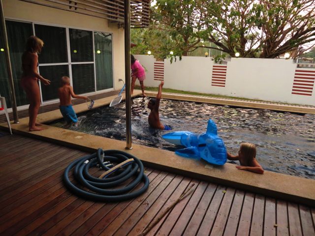 Viikolla huomasimme Piekun kantapäässä olevan haavan melko pahasti tulehtuneen… äiti antoi lääkettä ja kylmää käärettä, ja yksi päivä lepoa, niin alkoi tulehduskin asettua! Vieläkään ei jouduttu käymään Bangkok-Pattaya Hospitalissa!