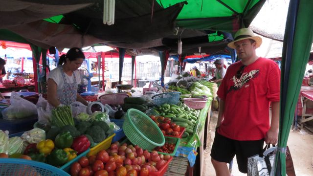 Kävimme katsastamassa myös Pattayan ”Floating Marketin” eli kelluvat markkinat. Olihan siellä vettä ja muutamia kelluvia myyntiveneitäkin, mutta pääasiassa kiinteitä, jalustoille rakennettuja kulkusiltoja ja kojuja. Kaikkea mahdollista oli kaupan, varsinkin ruokaa. Paikalliset pääsevät tänne ilmaiseksi, mutta farangeilta on alettu viime aikoina periä 200 THB (n. 5 €) pääsymaksu. Tästä olisi saanut vapautuksen vain työluvalla tai thaimaalaisella ajokortilla, jollaisia meillä ei vielä ole.